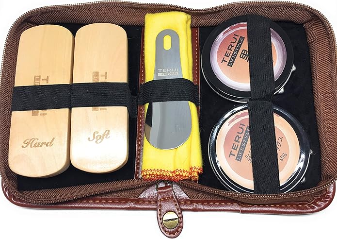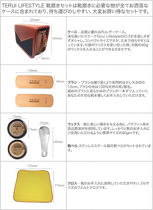 PUレザーケース、100%馬・豚毛ブラシ、ステンレス靴ベラ、等