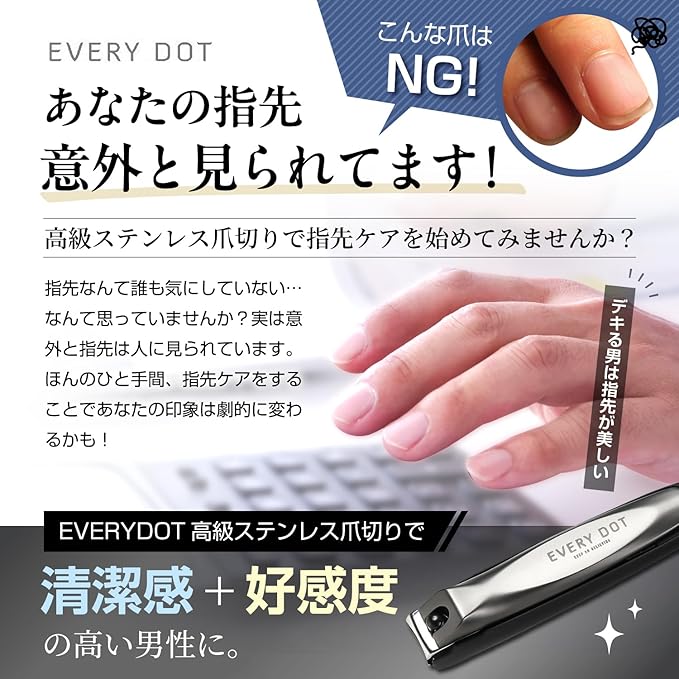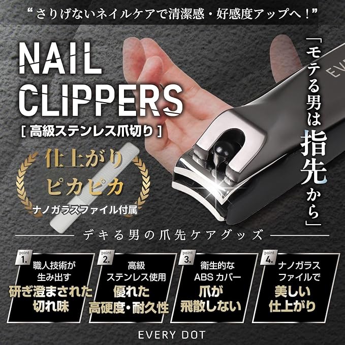 EVERYDOT 爪切りは、メンズ美容や美意識高めの男性に最適なツールです。高級爪切りとしての品質を追求し、爪ケア tool やつめやすりとして爪磨きに利用可能。日本の企業が手掛ける 爪切り人気ランキングや爪やすりの評価も高い製品です。