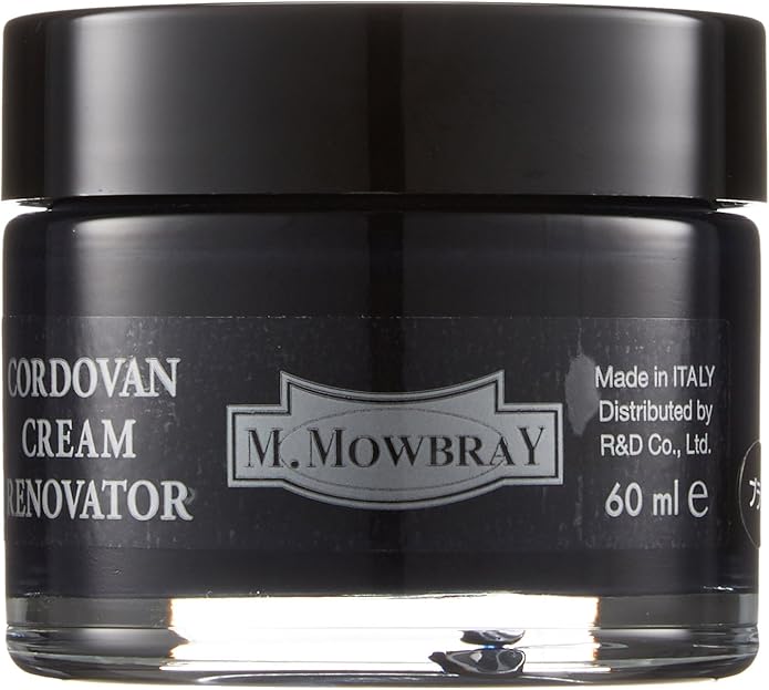 M.モゥブレィシュークリームは靴の歴史が長く、文化として根付いている欧州の伝統的製法とノウハウを今に伝える本格的靴クリームです。このシュークリームの特長は優れた浸透性により、潤いと栄養を与え、靴を長持ちさせる高い品質にあります。そして、同時に重厚感のある光沢、シルキータッチななめらかさと伸び、しっかりとした補色力といった使用感のよさとフィニッシュ(仕上り)が、プロや愛好家に支持され人気を博している理由です。製造は熟練の職人によって調合がなされ、さらにビンへの充てんも121つ彼らの厳しい目でチェックをしなが