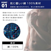 [素材] このトランクスは、100%天然素材の綿を使用しており、敏感肌や乾燥肌の方にも安心してご利用いただけます。 吸湿性と放湿性に優れ、汗を素早く吸収し外に放出するため、ムレずに清潔感を保ちます。 これは、汗をかきやすい夏の季節だけでなく、冬の重ね着によるムレを防ぐのにも最適です。 生地は柔らかく手触りが良いため、日常生活やビジネスシーンでも重宝します。