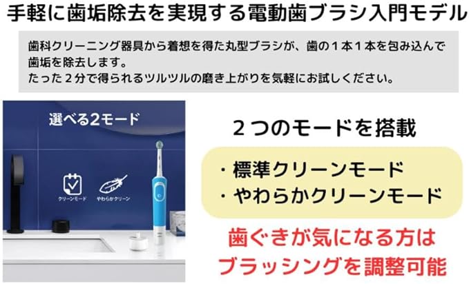 ●歯間ワイパー付ブラシ付。●ソフトラバー製の歯間ワイパーが歯と歯のすき間まで入り込み、歯垢をしっかりと除去します。●毎分7,600回の左右反転運動で、手磨きの約2倍の歯垢除去力を発揮。●やわらかクリーンモードを搭載。●歯ぐきが気になる方はブラッシングを調整可能。