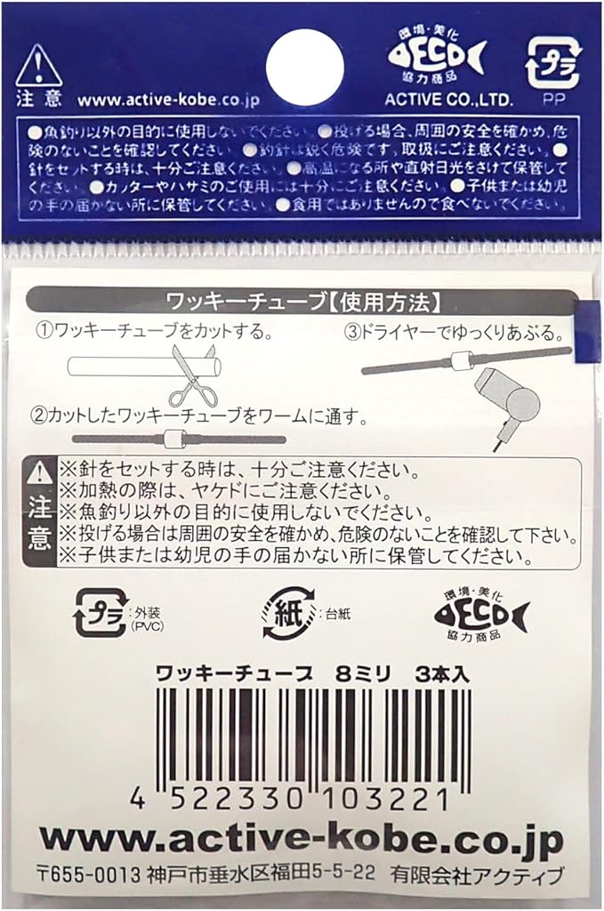 ACTIVE/アクティブワッキーチューブ◆サイズ:4/5/6/8/10/12★適当な長さにカットしてワームを通してライターなどであぶるとワームにぴったりサイズになります。チューブ部分にワームを通すと、ワームの耐久性がUPし、アクションもよくなります。※スワンプクローラーには、6mmがお勧めです。※キンクー5インチには8mm、キンクー7インチには10mmがお勧めです。
