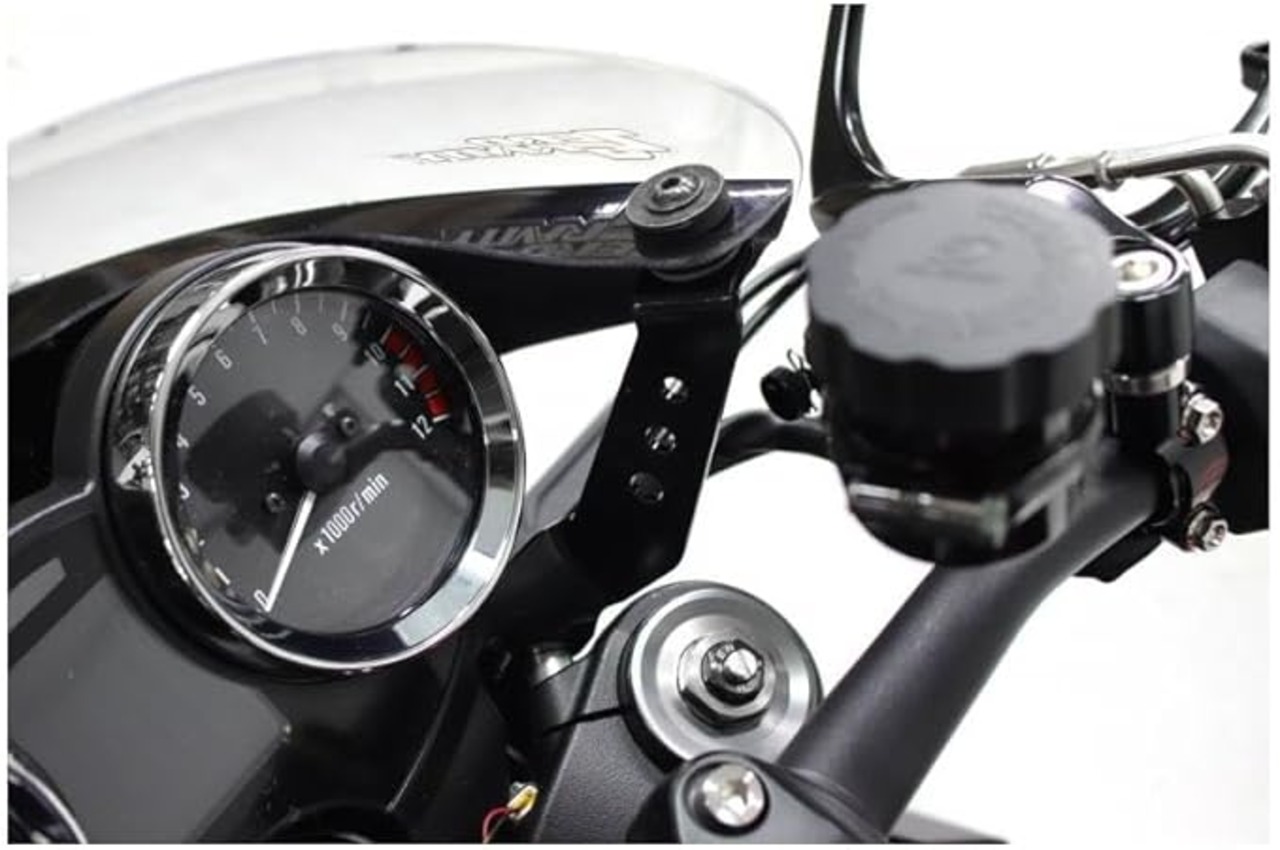 取付けパーツには、強度を重視したスチール製のステーと、カウルとタンクのラインをキレイに見せるためヘッドライト位置をオフセットするアルミ削り出しブロックが付属します。