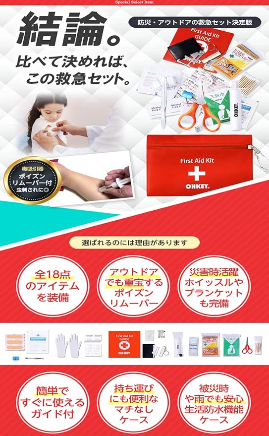 【防災士監修】OHKEY 救急セット ファーストエイド キット ポイズンリムーバー 登山 アウトドア 防災 救急箱 小型