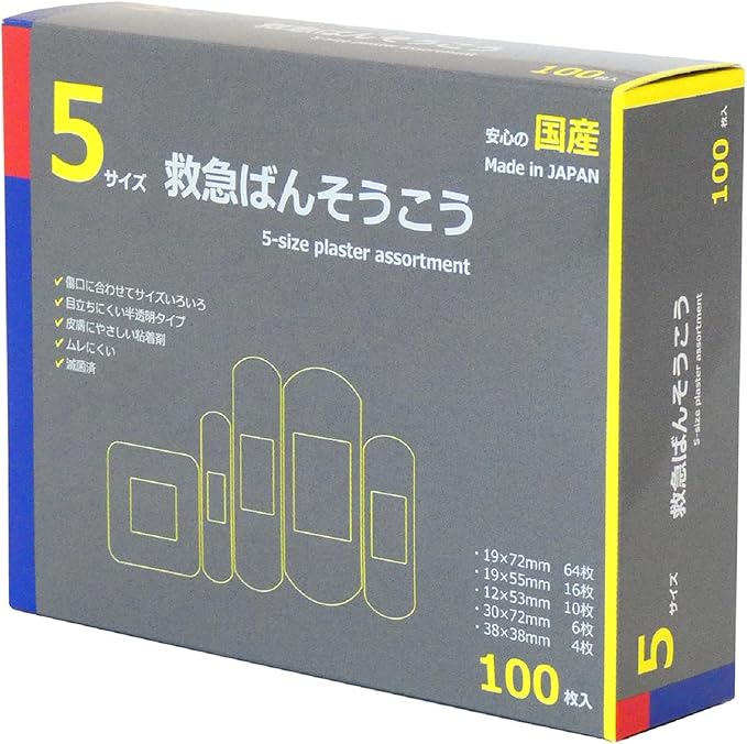 リバテープ製薬 5サイズ救急ばんそうこう 100枚入 日本製