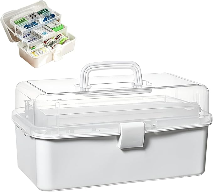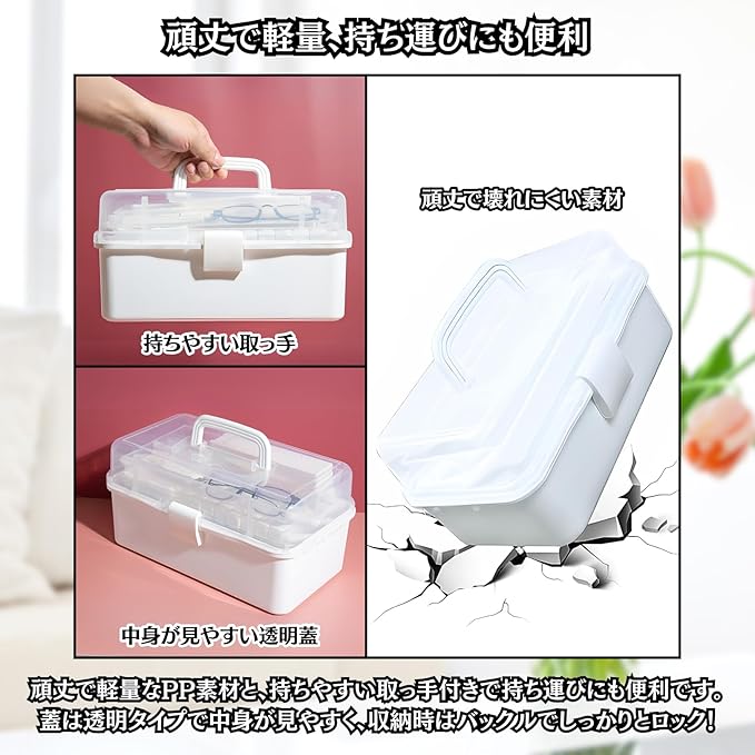 Charmoon 救急箱 薬箱 3段 ツールボックス 大容量 薬ケース 裁縫箱 工具箱 小物入れ 軽量 透明 取っ手