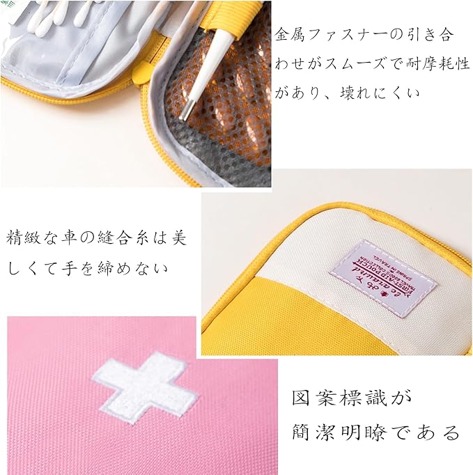 【丈夫な素材】軽量、防滴、耐摩耗性、フルジッパーのデザインで、応急処置バッグ内の薬をしっかりと保護します。
