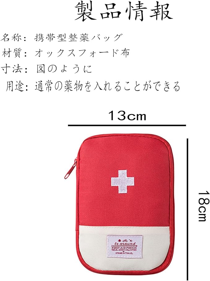 救急箱 お薬収納ポーチ 薬箱 救急パック ボックス ファーストエイドキット 携帯用 応急処置バッグ 整理 緊急処置セット 防災 登山 旅行 出張 登山防災 家庭/学校/アウトドア 救急用オフ携帯 収納便利 携帯用 ミニ救急バッグ 軽量(レッド)