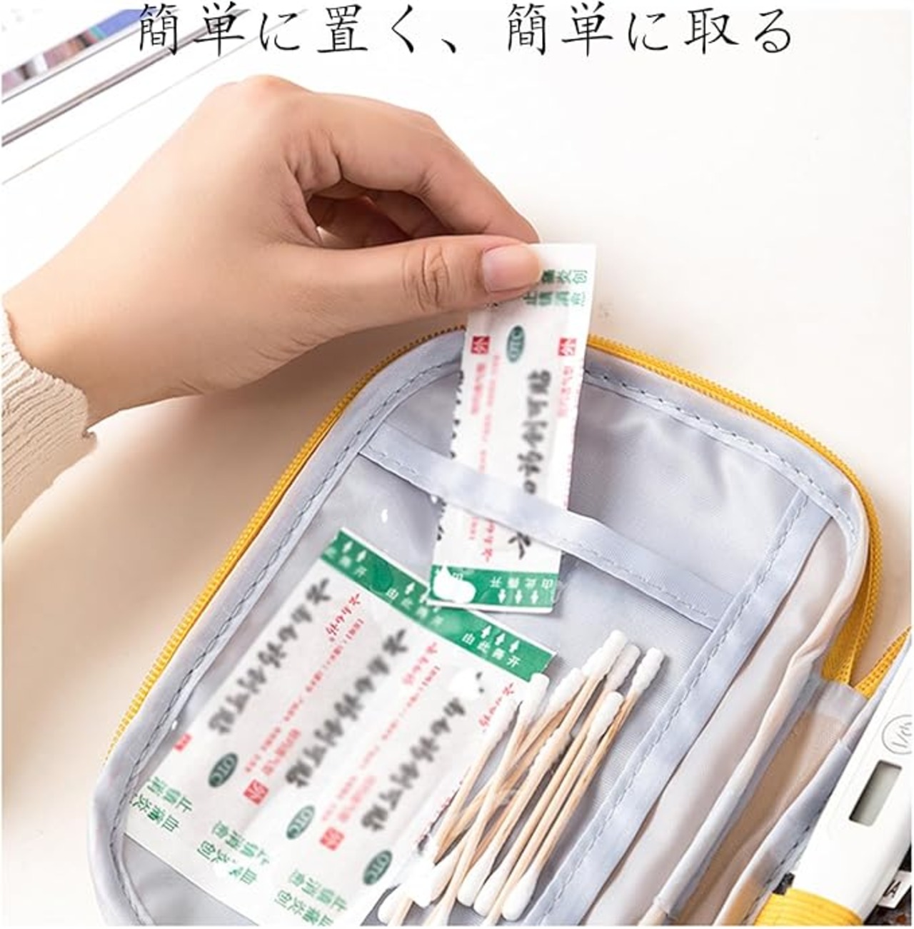 【シンプルで実用的】ファーストエイドキットはフルオープンファスナーを採用し、バッグはフルオープンできるので、物の出し入れがしやすく大変便利です。