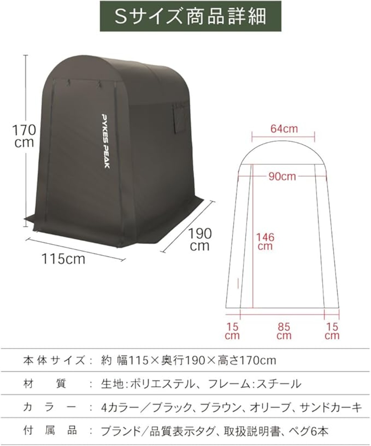 【仕様】 本体サイズ:W115㎝ D190㎝ H170㎝、収納サイズ:W91㎝ D24㎝ H21㎝、重量:約12kg、材質:シート ポリエステル:フレーム スチール【付属品】ペグ 6本、取扱説明書(日本語)【HOT保証】PYKES PEAKは日本のHOTです。カスタマー対応も日本人スタッフが日本語で丁寧に対応いたします。