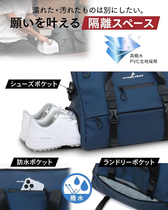 ✅【多種多様な収納ポケットが7つ】使用者の「勝手の良さ」を追求したポケットが7つ!汚れや濡れた服を隔離できるランドリーポケットを備えています。またスポーツ時に使用するシューズと、履き替え用のシューズなどを格納できるシューズインポケット、スマホなどを雨から守る防水ジッパーポケットなど、収納力も機能性も考え抜かれた設計です。