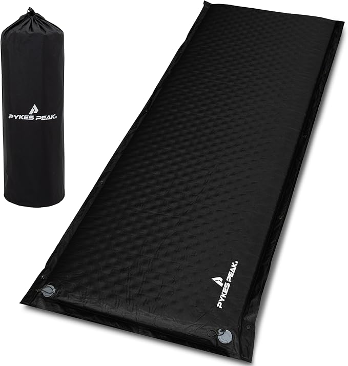 PYKES PEAK( パイクスピーク ) インフレーターマット キャンプ マット 極厚 8cm 自動膨張式 凹凸ウレタン 極上寝心地 連結 裏面スエード 収納袋 リペアシート付き アウトドア キャンプ 車中泊 防災 (スタンダード・ブラック)