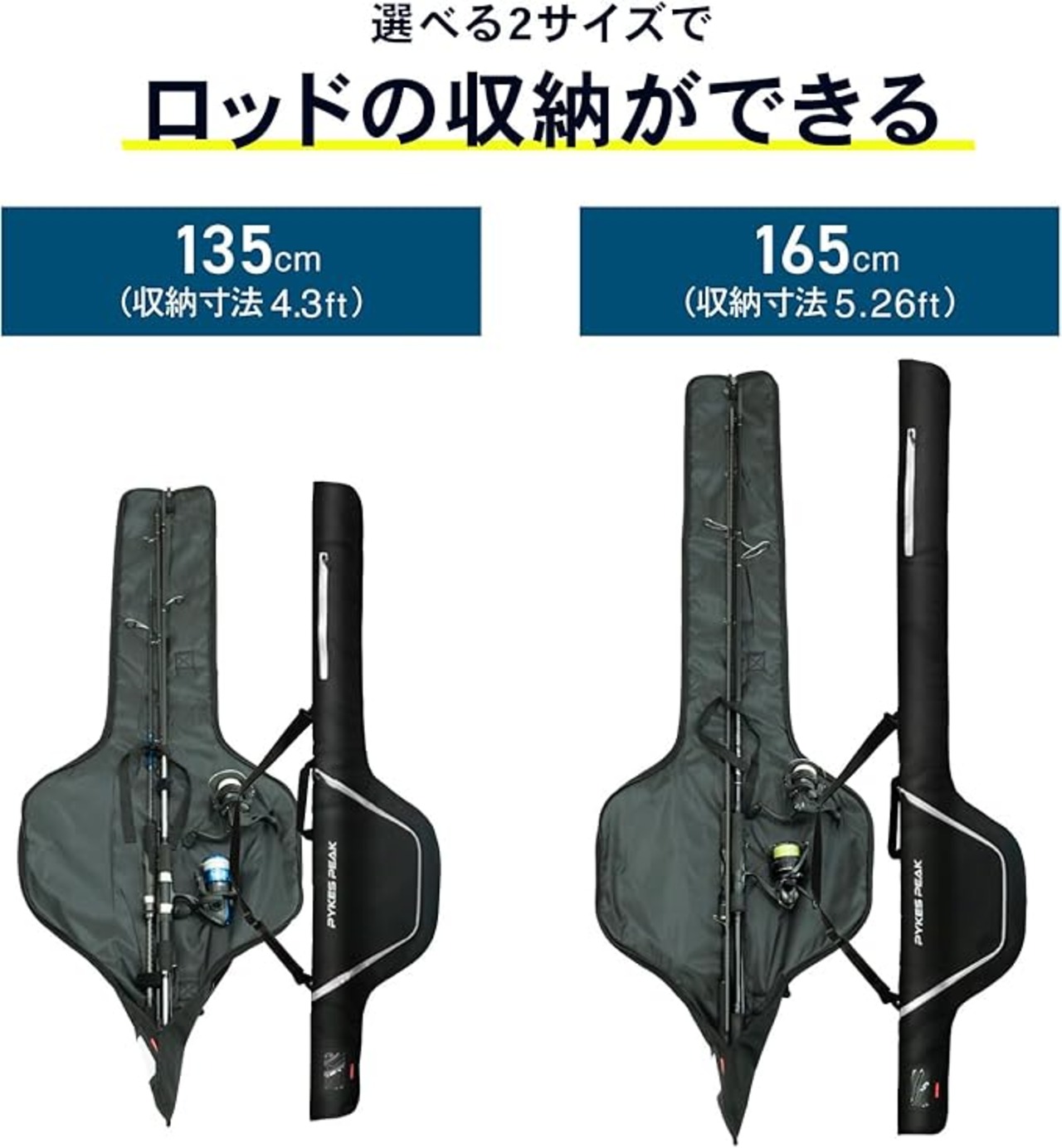 【竿を固定して衝撃から守る】ケースの内側にマジックテープの固定ベルトを装備しており、釣竿をしっかりと固定できます。移動中に竿が動くのを防ぐことで、竿を衝撃から守ることができます。【選べる2サイズ】釣竿に合ったサイズを選べるよう、135/165/195cmの3サイズを展開。コンパクトな釣りから大物狙いの長竿まで狙う獲物に合わせて幅広く対応可能です。
