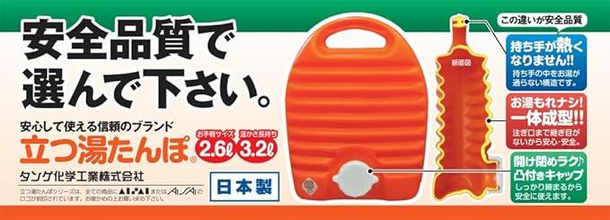 タンゲ化学工業 立つ湯たんぽ オレンジ 2.6L 袋付き TN00314