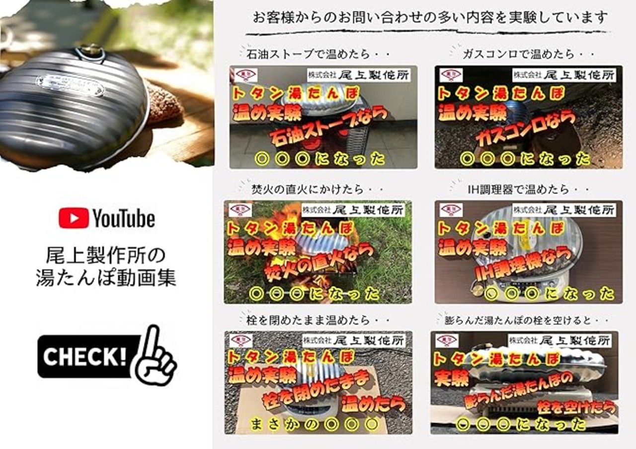 尾上製作所(ONOE) トタン湯たんぽ ブラウンカバー付き MY-7205 [キャンプ 防災グッズ 金属 日本製 容量2.4リットル お湯 アウトドア]