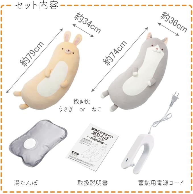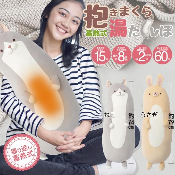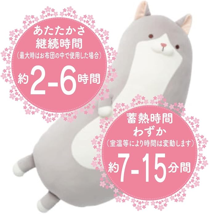 ヒロコーポレーション 蓄熱式抱きまくら湯たんぽ ねこ ぬいぐるみ かわいい 湯たんぽ ポカポカ 充電式