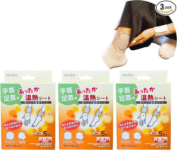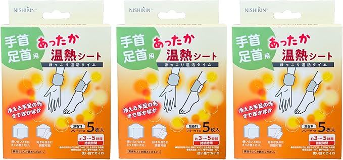 使い捨てカイロ あったか温熱シート (手首・足首用) 1パック5枚いり 3個セット さっと巻くだけ 室内 温活習慣 室内クーラー対策