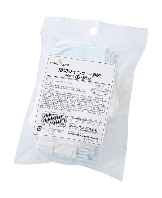 ショーワグローブ 【インナー】B0950指切りインナー20枚入 フリーサイズ 1袋