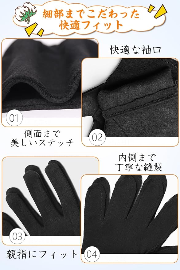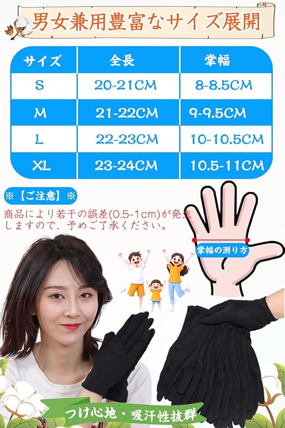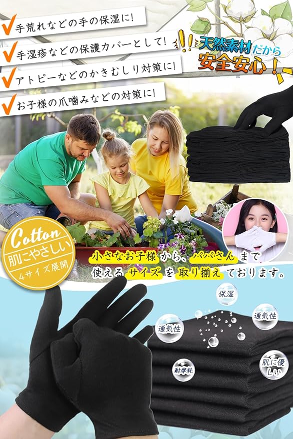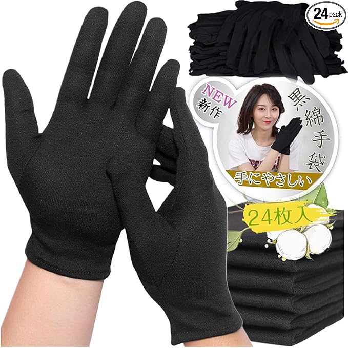 [LUYULAKI] 綿手袋 黒 手荒れ コットン 布手袋 薄手 スムス 作業用 インナー 使い捨て おやすみ ナイト ハンドケア 保湿 業務用 検品 家事 貴重品 メンズ 子供 レディース 左右兼用