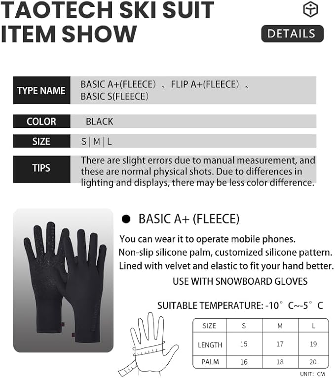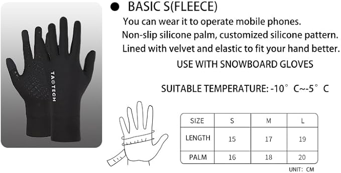 [TaoTech] インナーグローブ 薄手 裏起毛 タッチスクリーン スマホ操作 スノーボード グローブメンズ レディース 男女兼用