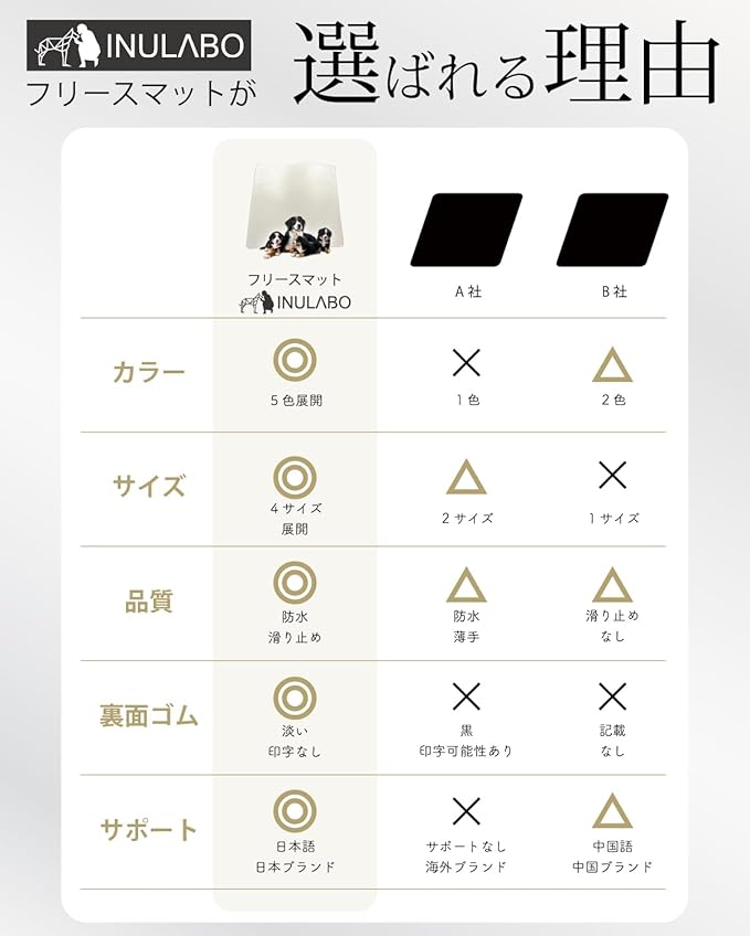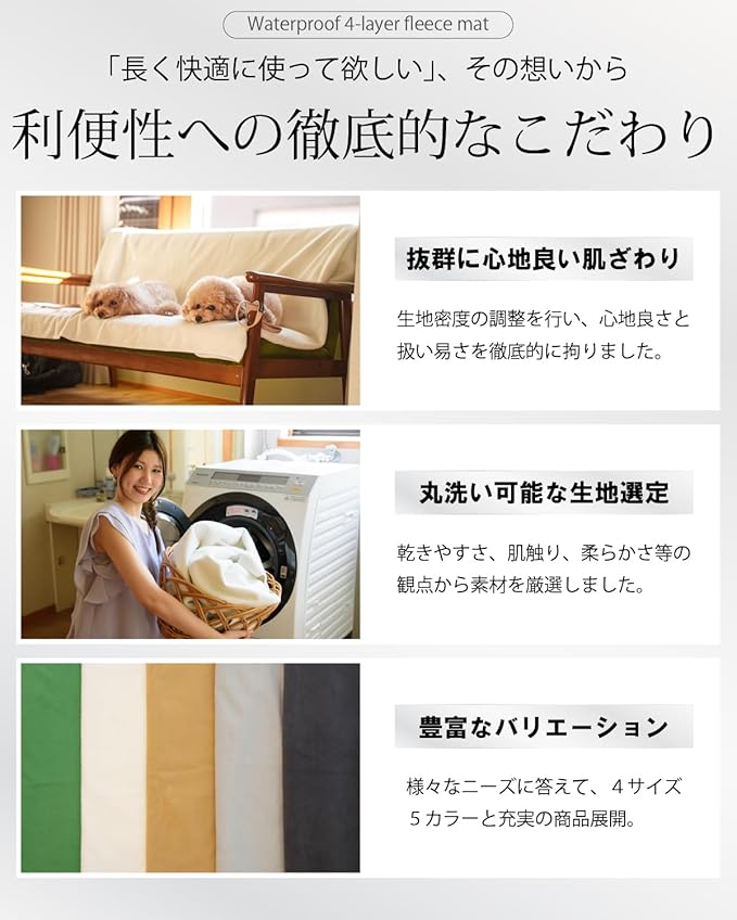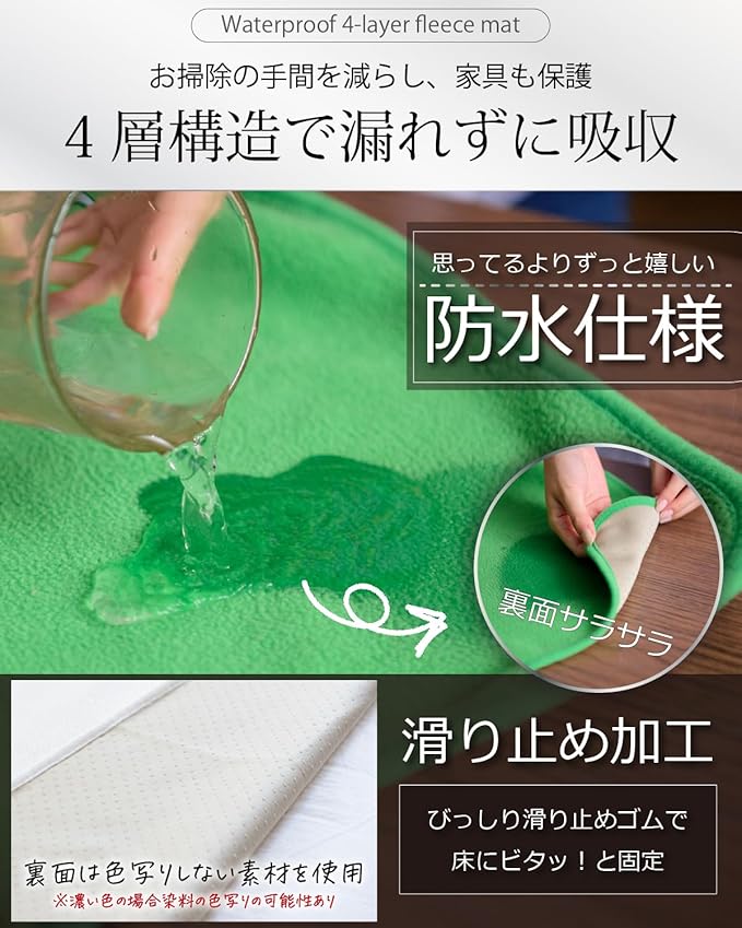 【防水だから、大切なものを徹底保護】 高品質フェルトと、防水コーティングポリウレタン生地で、マットの下を完全保護します大切な車や家具に敷いて、わんこの自遊空間を広げられます