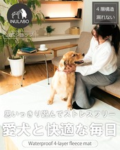 【インテリアの一部として】 ペット用品の多くは実用性が重視されるばかり、デザイン性を軽視される傾向がありますINULABOのアイテムは、リビングに敷いても「ペット用品感」がないカラーに仕上げています