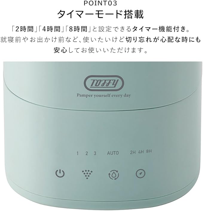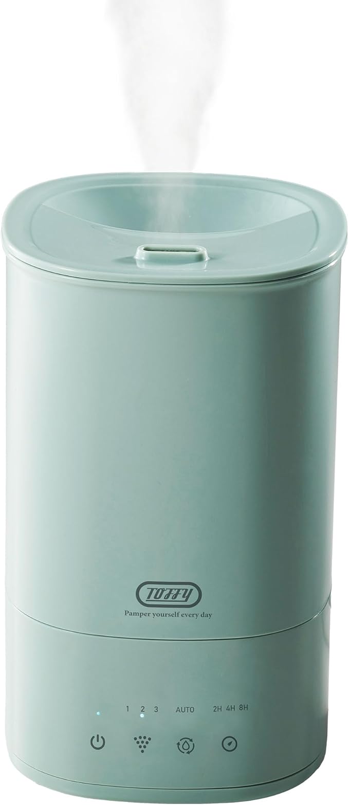【Toffy/トフィー】 抗菌アロマ加湿器 [1.6L] HF12 抗菌 上部給水式 自動でミスト量調整機能 アロマオイルを直接ドロップ可 レトロ ペールアクア