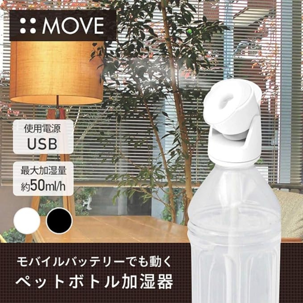 ペットボトル加湿器 MOVE 最大加湿容量 約50ml/h ブラック