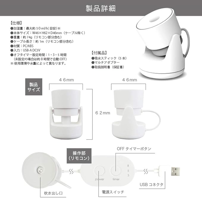 ●超音波の振動でミストを作り出すため、うっかりミストにふれても熱くない。
