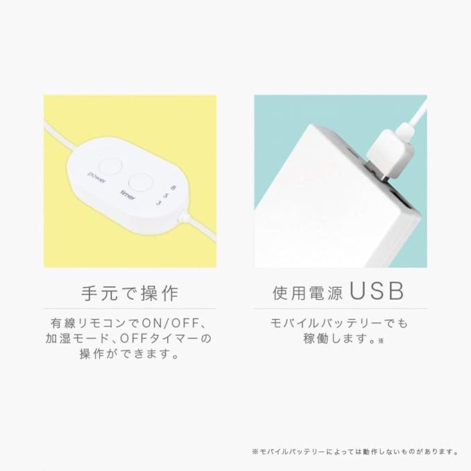 ●ご自宅のお部屋・職場の机・ホテルのお部屋などUSB電源につないで使用可能。