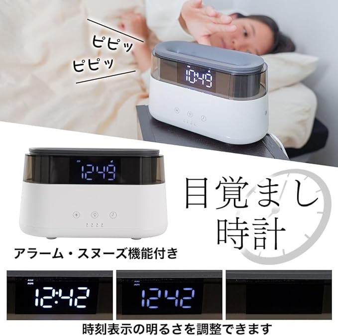 目覚まし時計の機能がついているので、加湿器としてだけでなく時計として使うことができます。 ■朝の目覚ましに