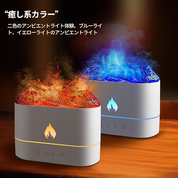 【雰囲気作り機能】この種類の加湿器は多彩なライト効果を備えており、例えば紫色、オレンジ色など火炎に似た色があります。スプレーと組み合わさることで、本物の溶岩噴火のような視覚的な雰囲気を作り出すことができます