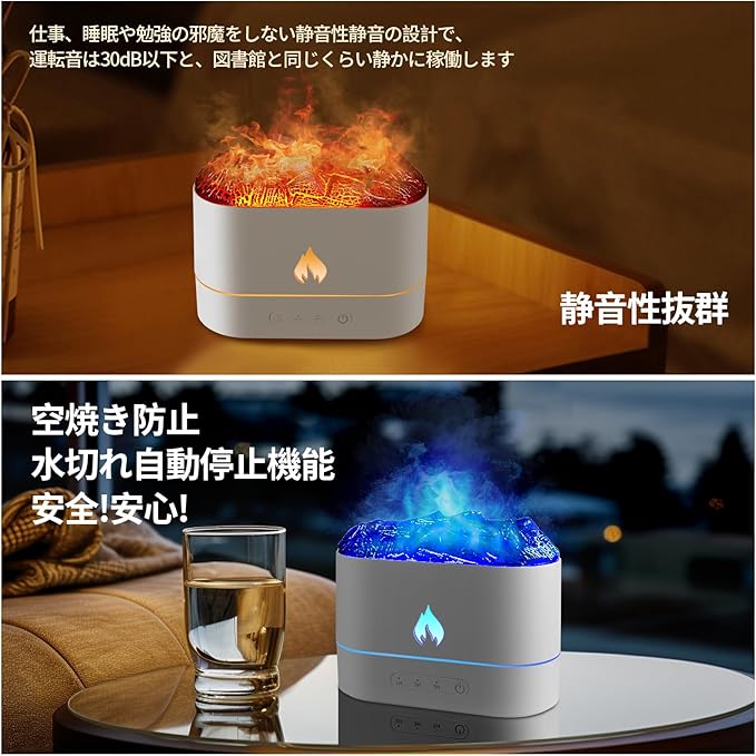 【新年の贈り物】:新年の訪れにあたり、炎の雰囲気ライト加湿器は素晴らしい贈り物となります。特有のデザインと実用性が融合し、友人や家族に温かな思いを届ける理想的なプレゼントです。ユニークで心温まる贈り物で、シーズンをお祝いしましょう