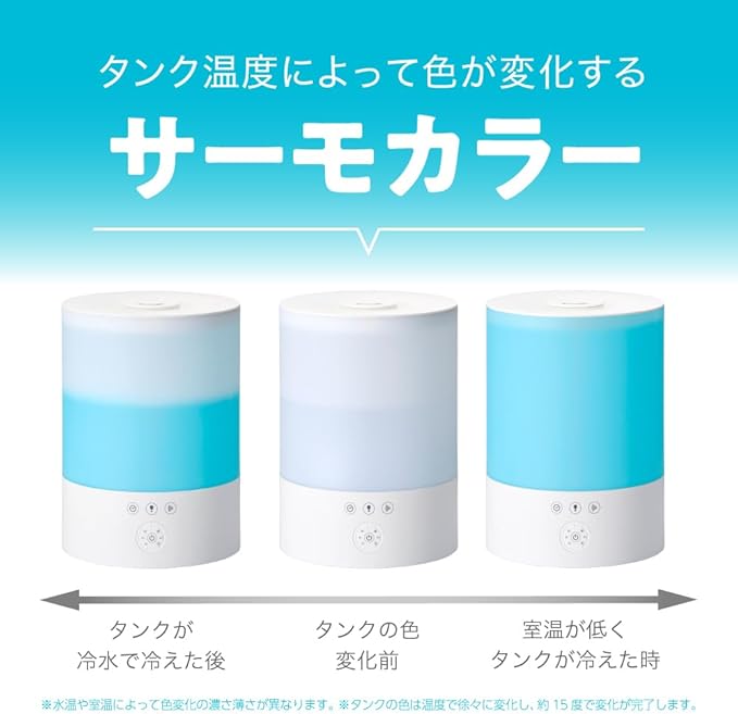 ドウシシャ 加湿器 超音波式 サーモカラー プレハブ 6畳 木造 3畳 容量 2.5L 3段階切替 アロマ対応 ホワイト KWA-202WH