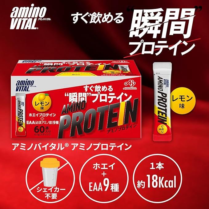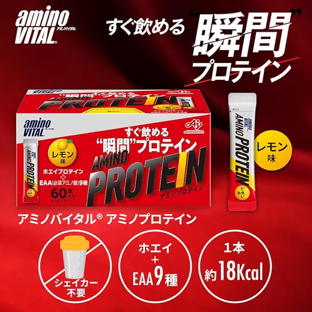 アミノバイタル 味の素 アミノプロテイン 粉末 レモン味 60本入箱 アミノ酸 BCAA EAA ホエイプロテイン シェイカー不要 計量不要 携帯性