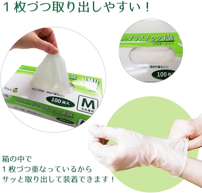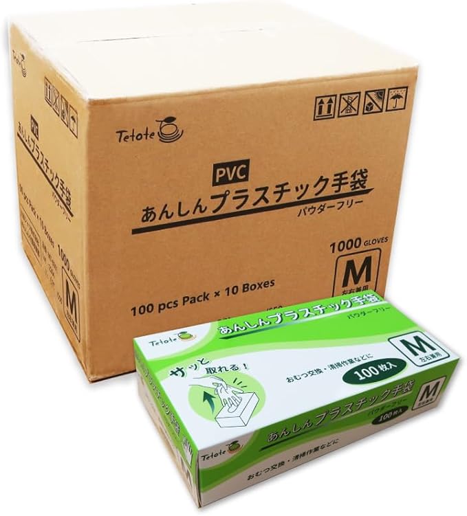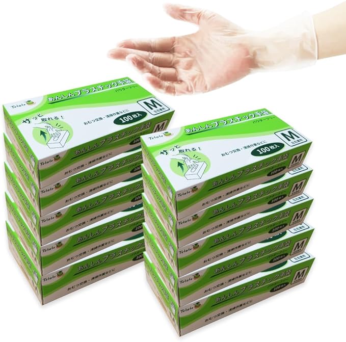 [Tetote] プラスチック手袋 100枚入 10箱 【1枚づつ取り出しやすい】 介護 PVCグローブ 使い捨て手袋 施設 清掃 おむつ交換 業務用 ケース まとめ買い S M L LL