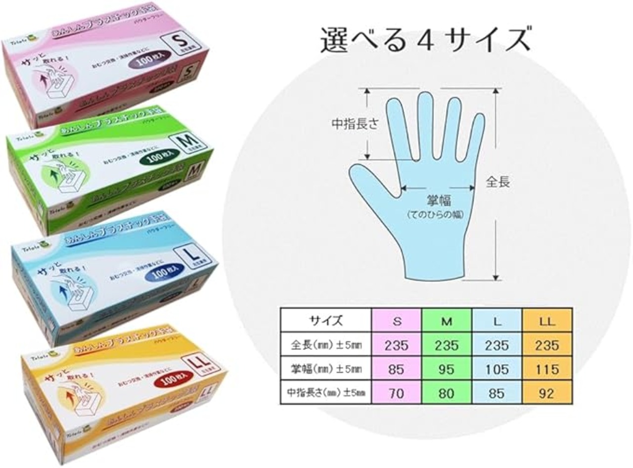 ニトリルグローブに比べフィット感、伸縮性には及びませんが、締め付け感が少なく、 しなやかにフィットする使い切りのグローブです。サイズごとにパッケージを色分けしているから、見やすく管理がしやすくなっています。
