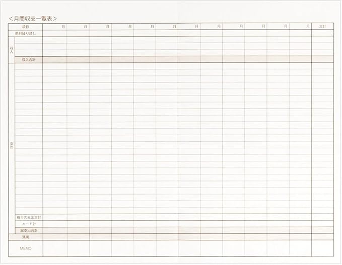 無理なく続けたい人に最適です♪♪ 内容:本文192ページ・月間スケジュール・週間家計簿・メモ・月間収支一覧表(別紙)