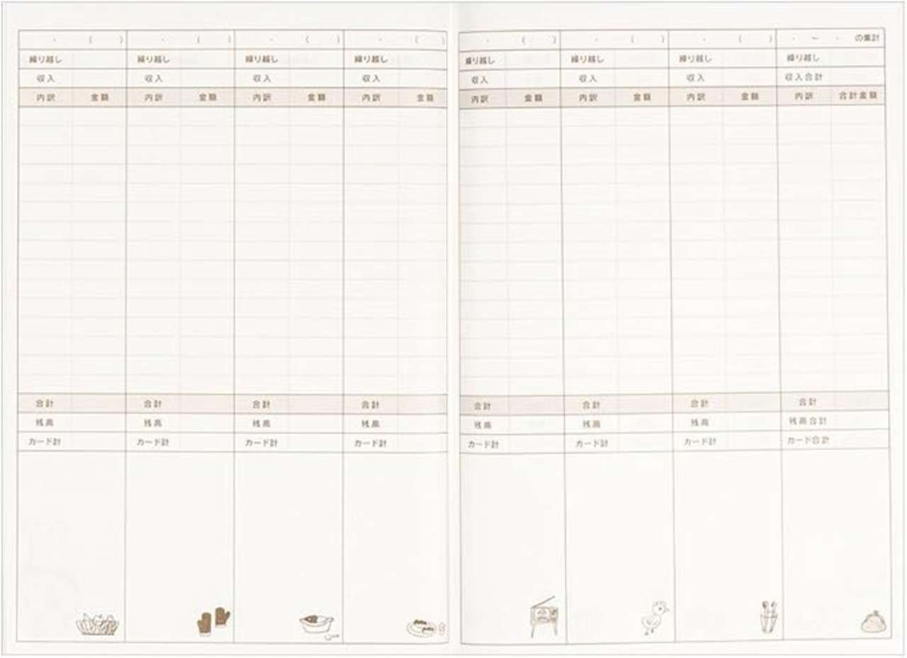 週間家計簿に見開き1ケ月ブロックのスケジュールが付いた、便利な家計簿です。