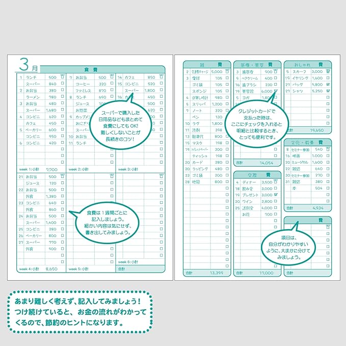 何にいくら使ったかが一目でわかる!項目やスペースを自由に設定できる!