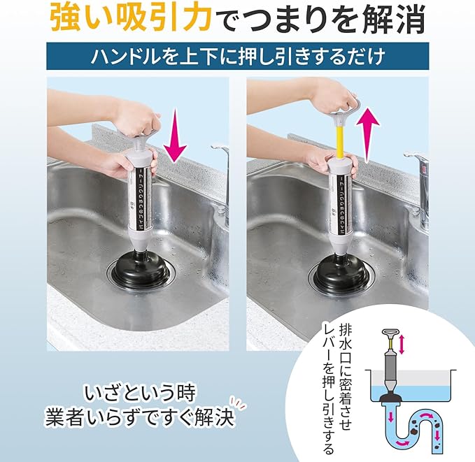 コモライフ パイプのつまりクリーナー パイプクリーナー 詰まり ラバーカップ 洗面台 風呂 排水管 トイレ