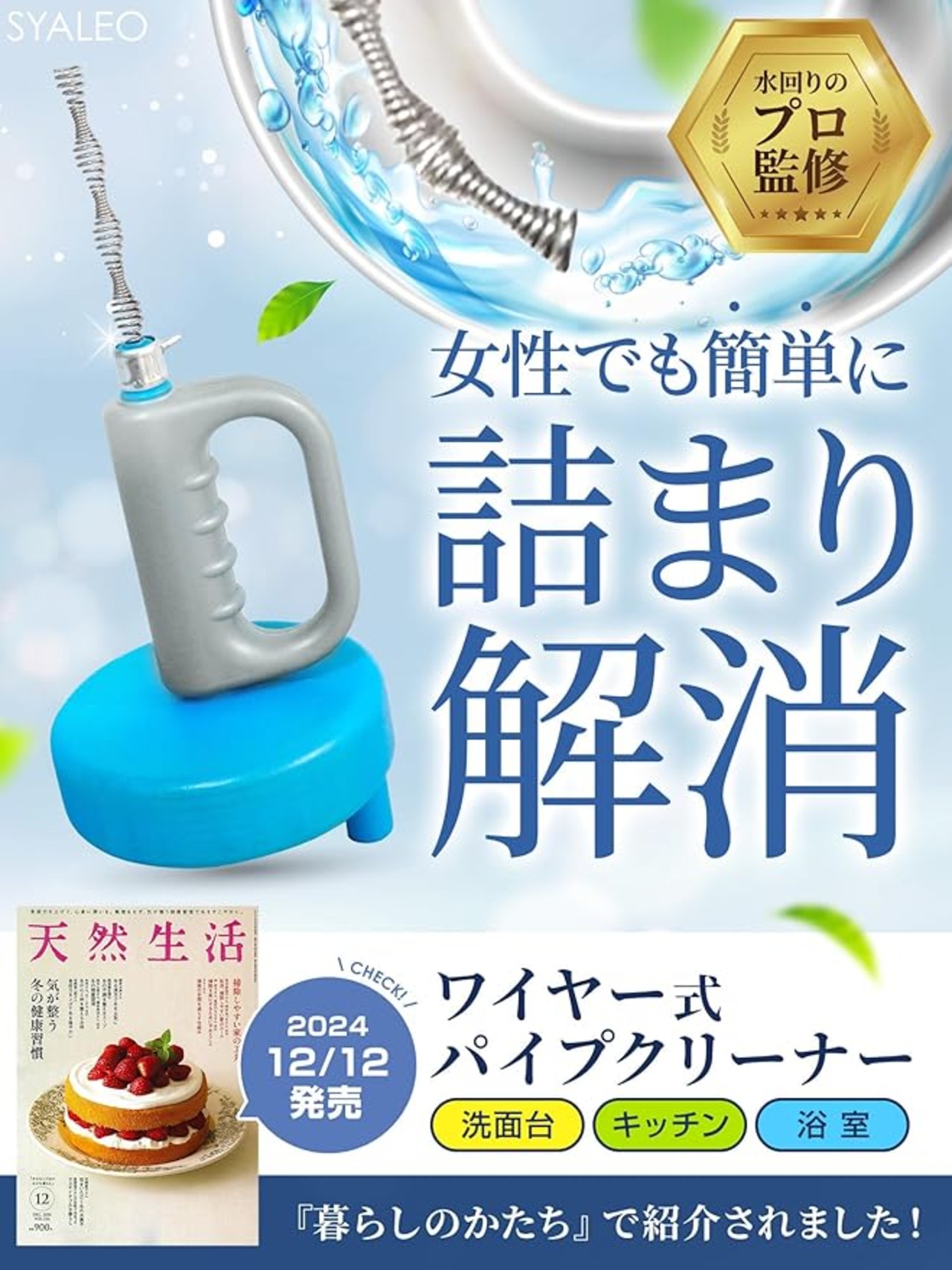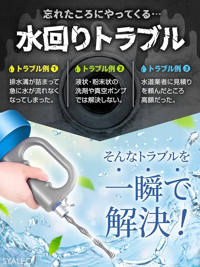 【商品仕様】○ワイヤー長さ:4.5m ○使用場所:洗面台/キッチン/浴室 ○対応可能排水溝サイズ:直径2.0cm以上 ○セット内容:パイプクリーナー本体、取扱説明書 ○限定商品:SYALEO