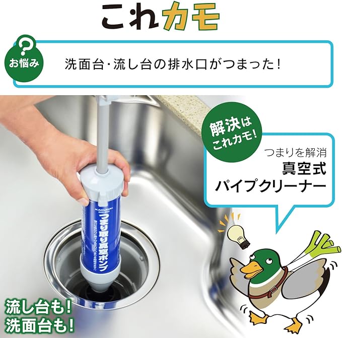 ガオナ これカモ 真空式パイプクリーナー 洗面台 流し台 (簡単 つまり解消) GA-KK003 ブルー