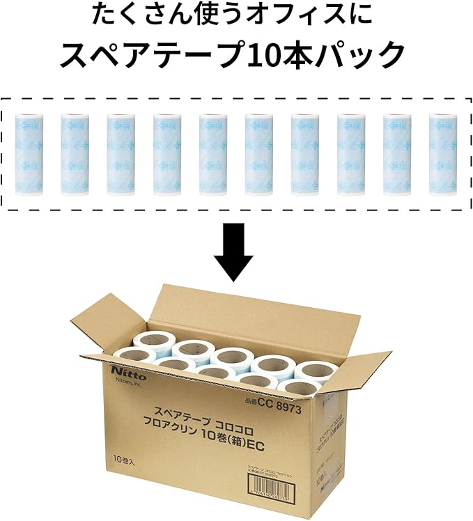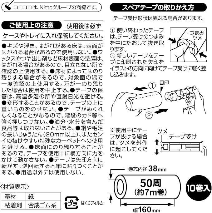 ニトムズ コロコロ スペアテープ 50周 10巻入 フロアクリン テープ 替え フローリング カーペット 畳 元祖 ペットの毛 ダニ 花粉 お徳用 160mm幅 CC8973