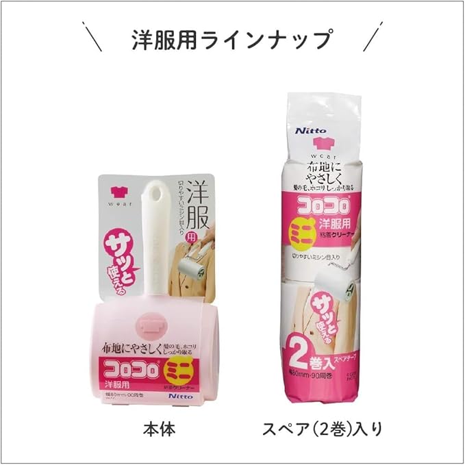ニトムズ コロコロ ミニ 本体+スペア(2巻)セット 洋服用 花粉落とし ほこり取り 生地を傷めない 80mm幅 90周 ピンク CC8978