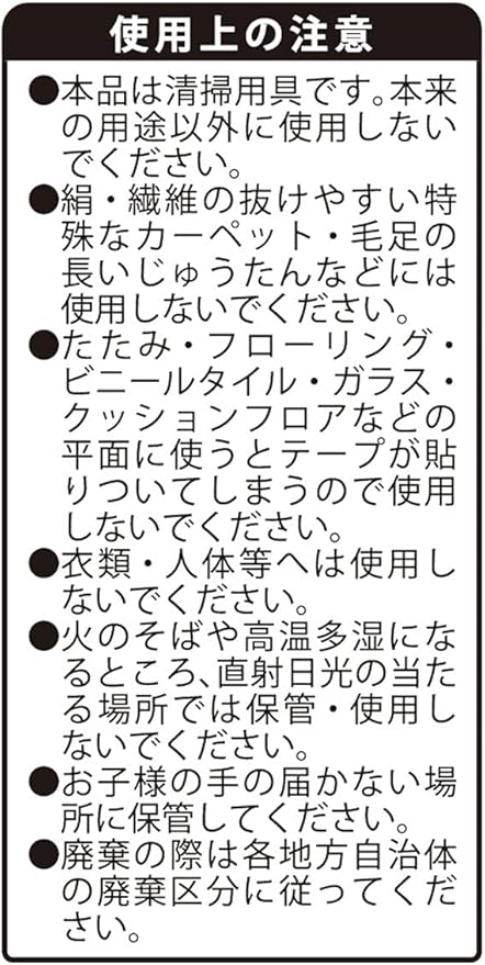強粘着タイプでカーペットの髪の毛、ホコリ、ペットの毛、花粉などをしっかりキャッチ