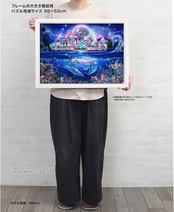 海中を泳ぐイルカとサンゴ礁の融合、月明かりも美しくまるで夢の時間へと誘うかのような1枚。箔印刷により豪華絢爛なジグソーパズルを実現。
