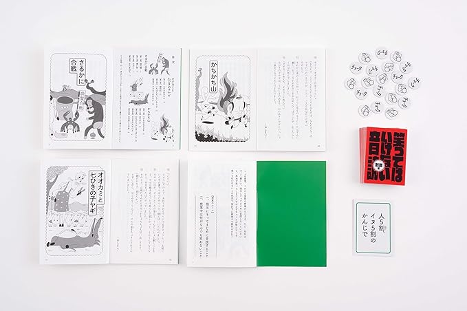 セット内容: 教科書4冊(52ページ/童話3話収録 「さるかに合戦」「オオカミと七ひきの子ヤギ」「かちかち山」) 指示カード50枚 チョークチップ20枚