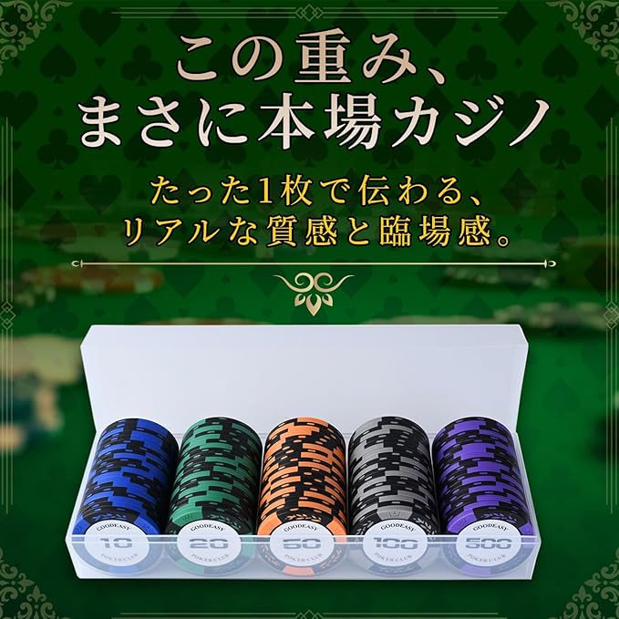 テキサスホールデム、オマハ、ブラックジャックなど多彩なゲームに最適なセットです。