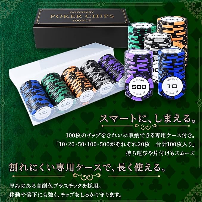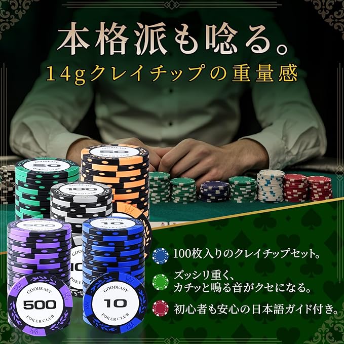 ポーカーチップ ポーカーセット カジノチップ チップセット クレイチップ チップ カジノ 100枚 GOODEASY(グッドイージー)